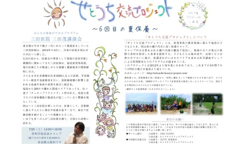せとうち交流プロジェクト2017年度の夏保養開催中に、岡山市内で開業医をしている三田茂さんを前島にお迎えし、講演会を開催します。 三田医師は、東京都小平市で開業医をしていましたが、福島原発事故後、原発から200キロ以上も離れた東京に住む親子たち…