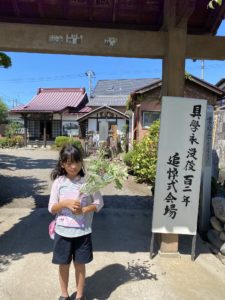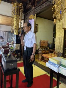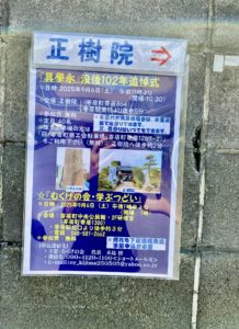 台風一過、太陽のギラギラ照りつける中、沢山の方が集まり、正樹院にて追悼式が行われました。この小さな町の小さなお寺で静かに眠る具學永さん。飴売りだった彼の家族は、彼の帰りを待っていただろうに。まさかこんな形で命を奪われるなんて。。。住職の唱えるお経が、悲しく胸に響きました。