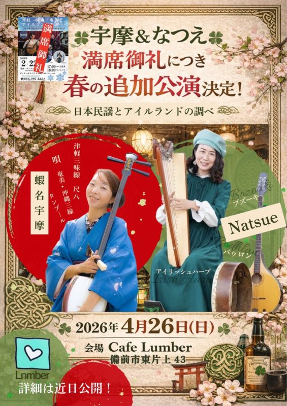 アイリッシュ&和楽器コラボライヴ。大好評につき追加公演決定‼️